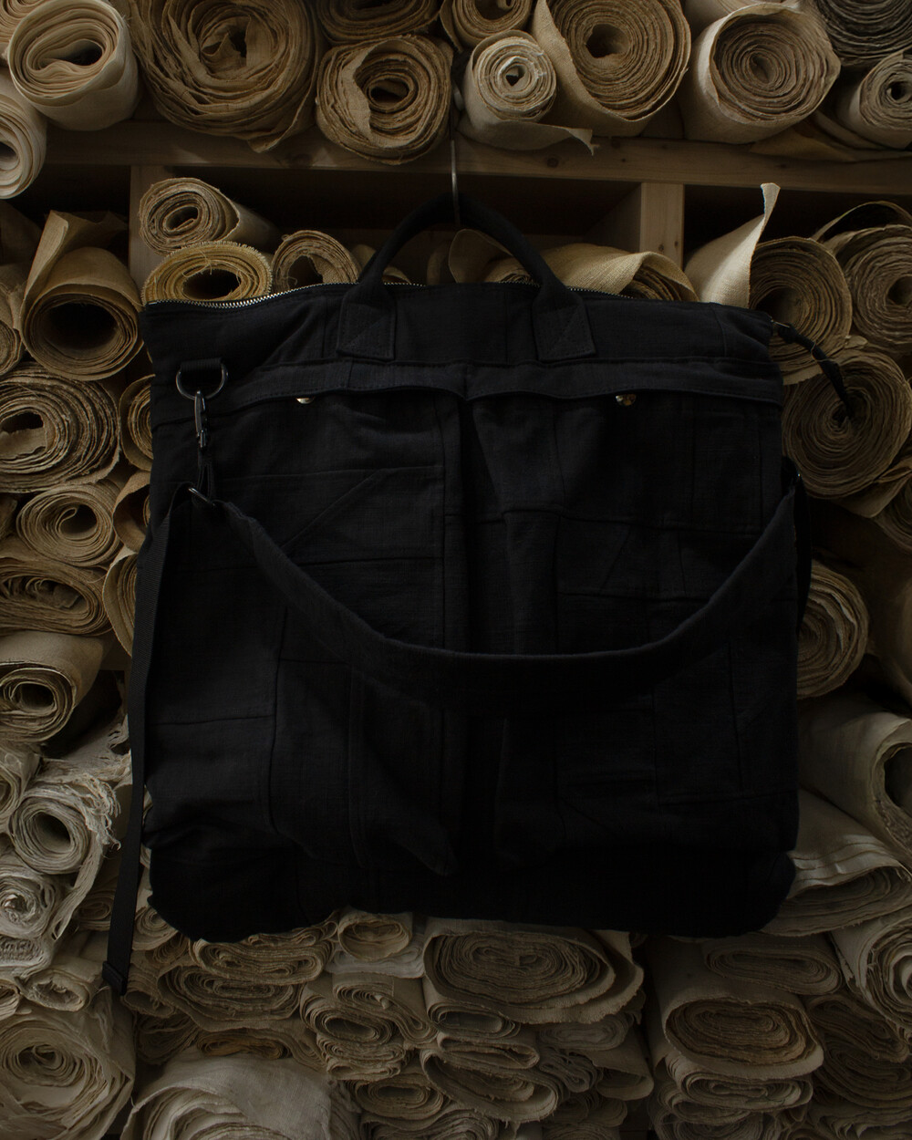 이 가방의 핵심은 약 70년의 시간을 품은 무명(Moomyeong) 원단에 있습니다.