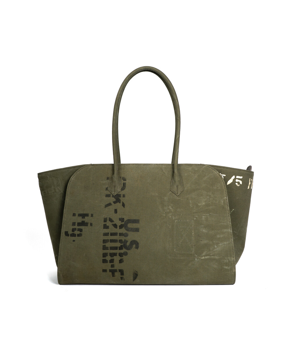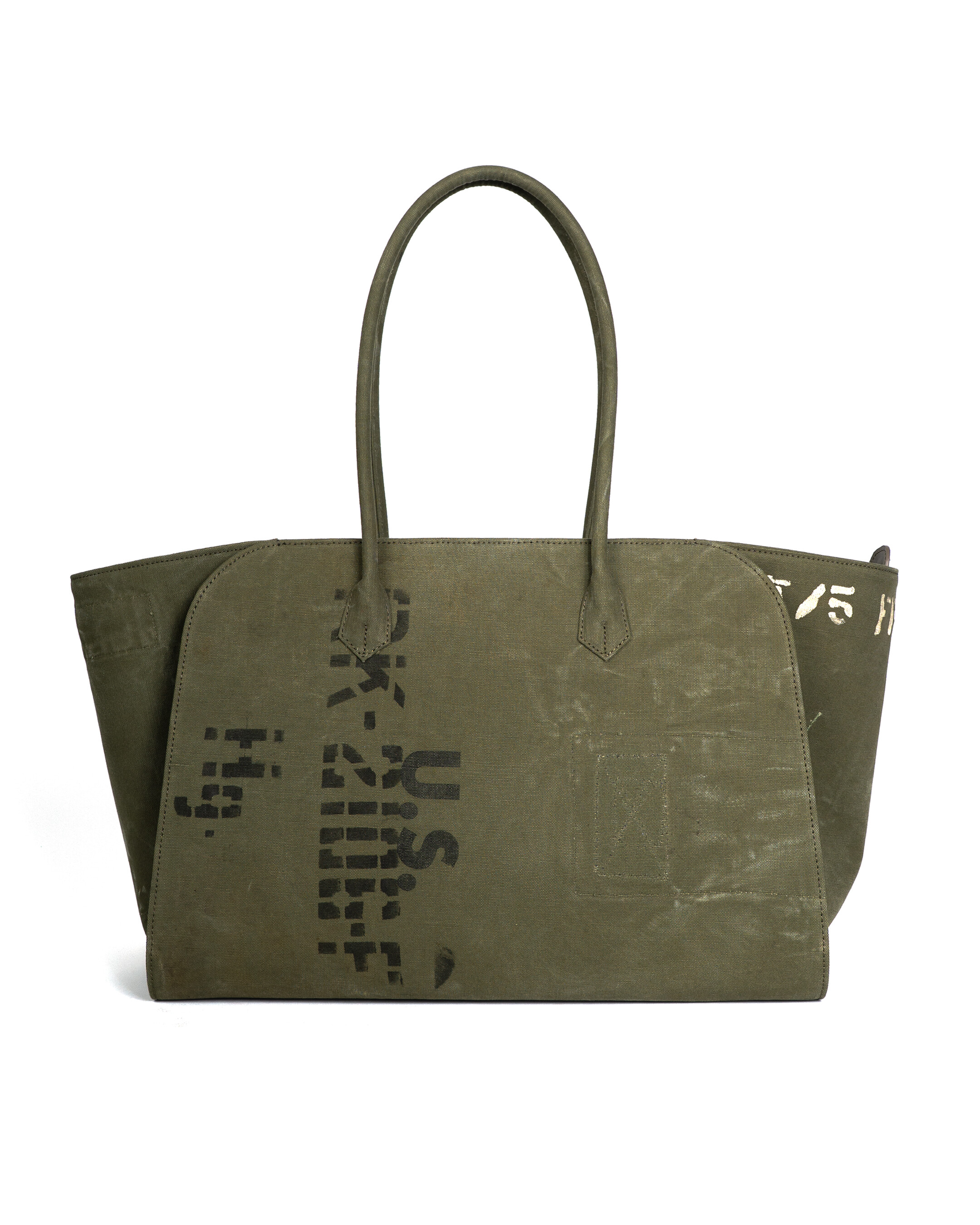 본래의 더플백에 남아있는 스텐실, 낙서, 그리고 원단의 경년 변화는 각 개체가 지나온 시간의 흔적으로, 그 흔적을 최대한 살려 제작하였습니다.