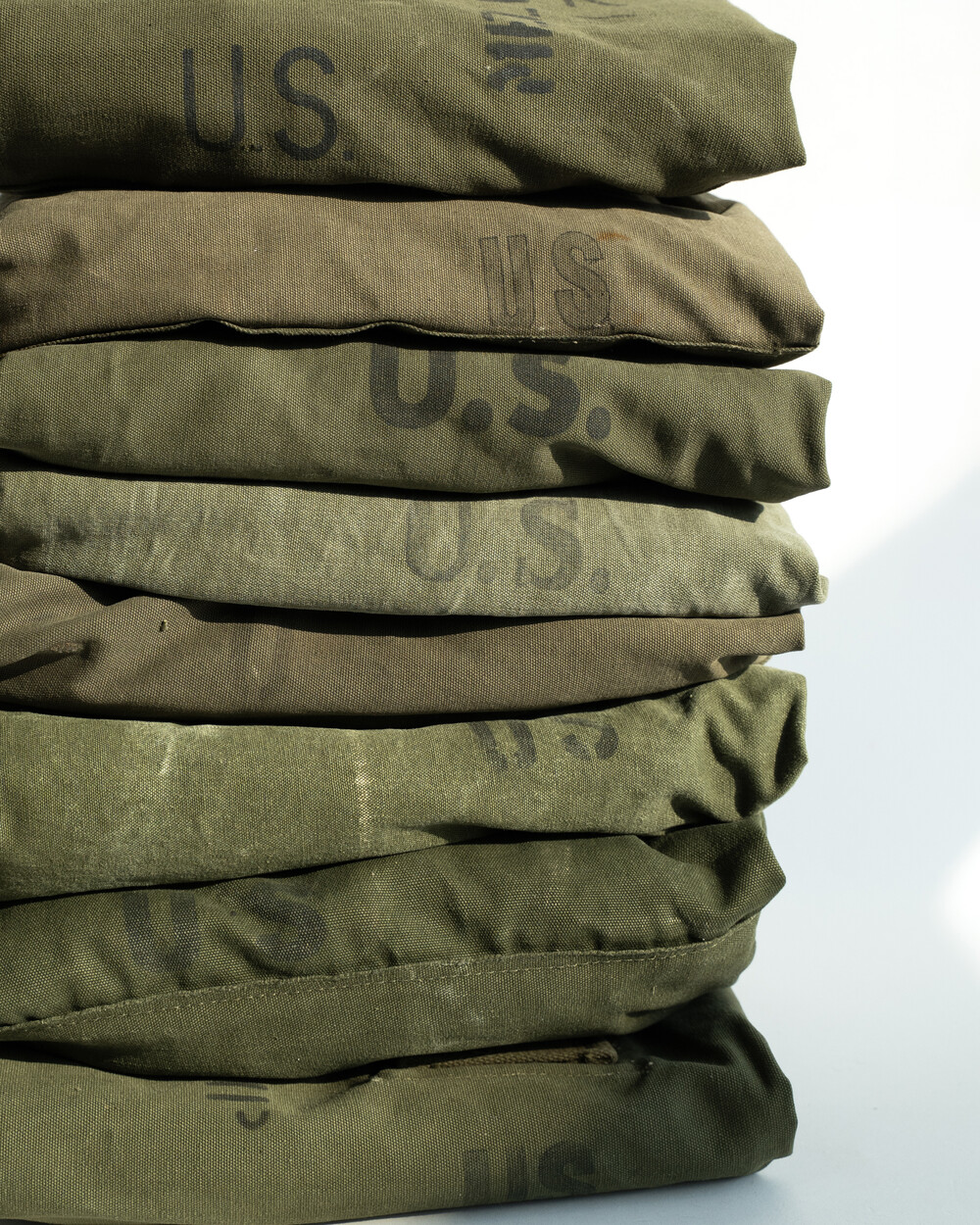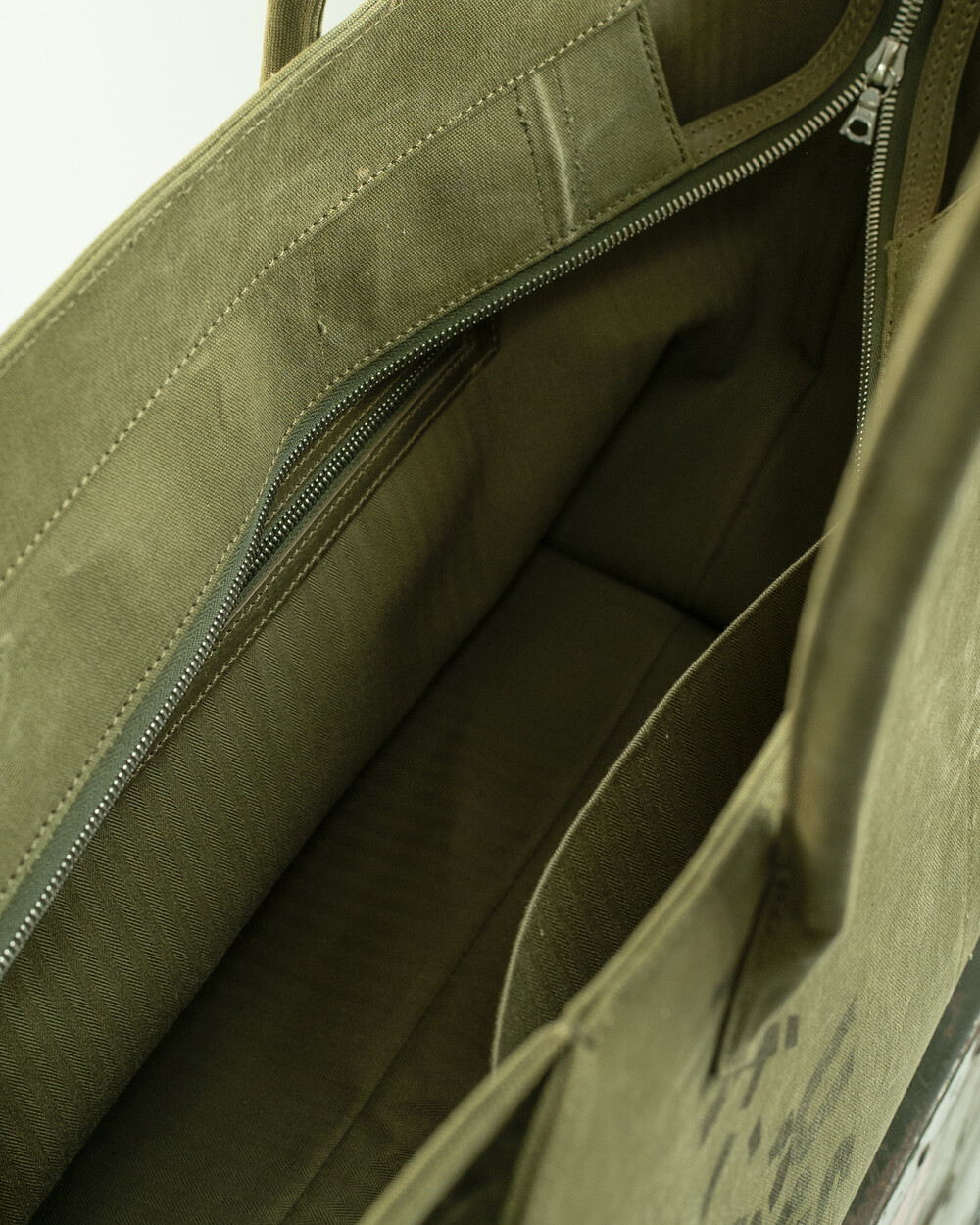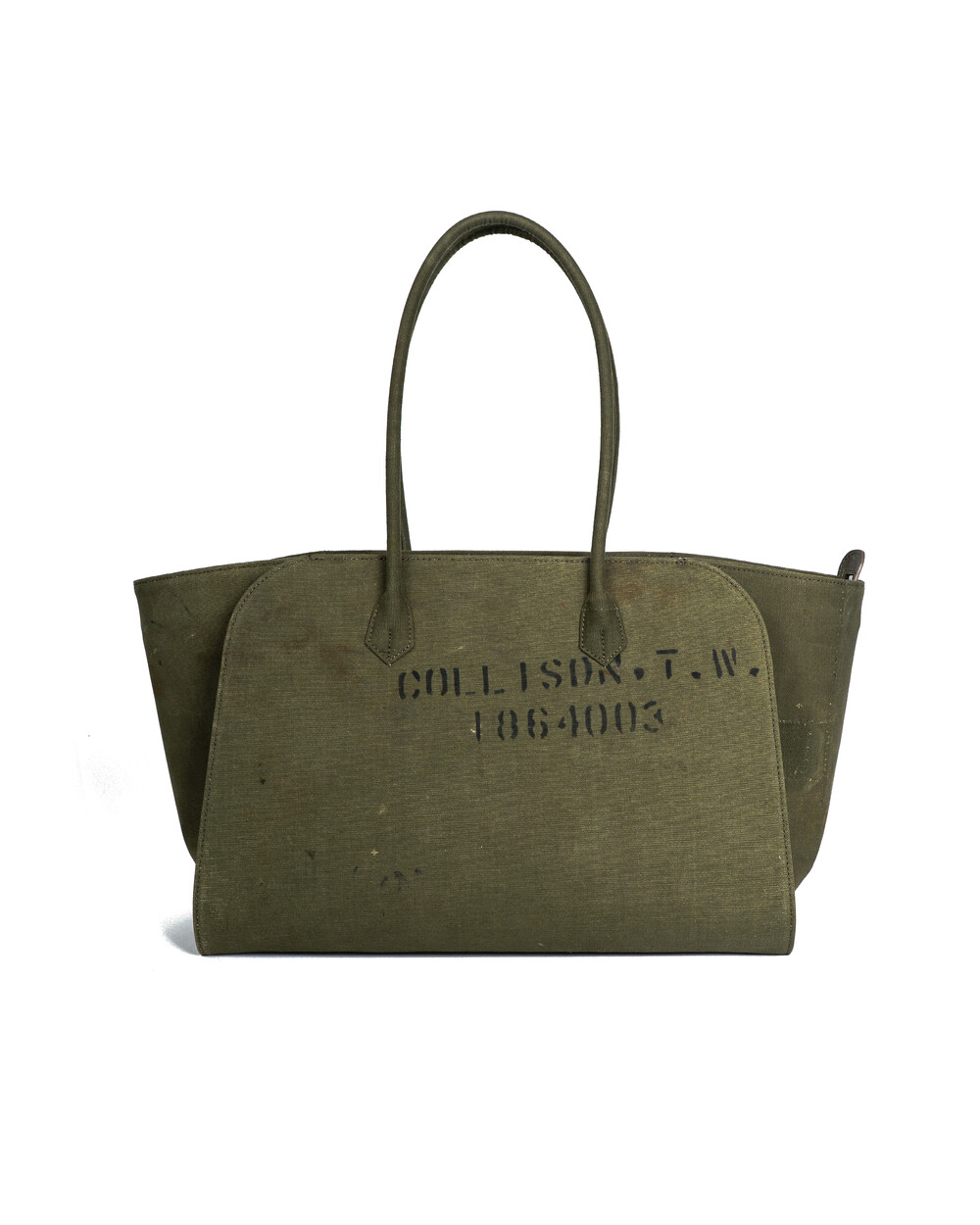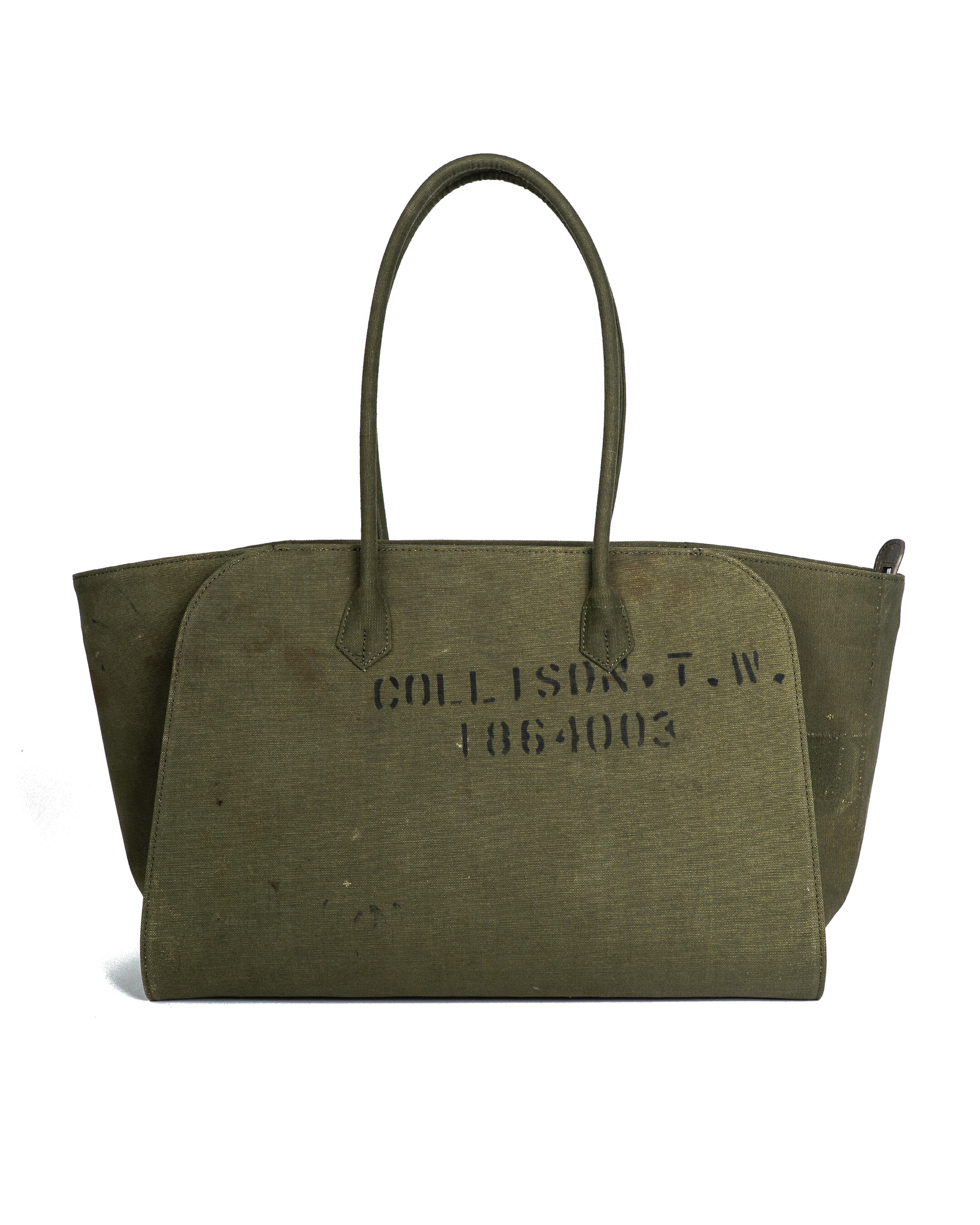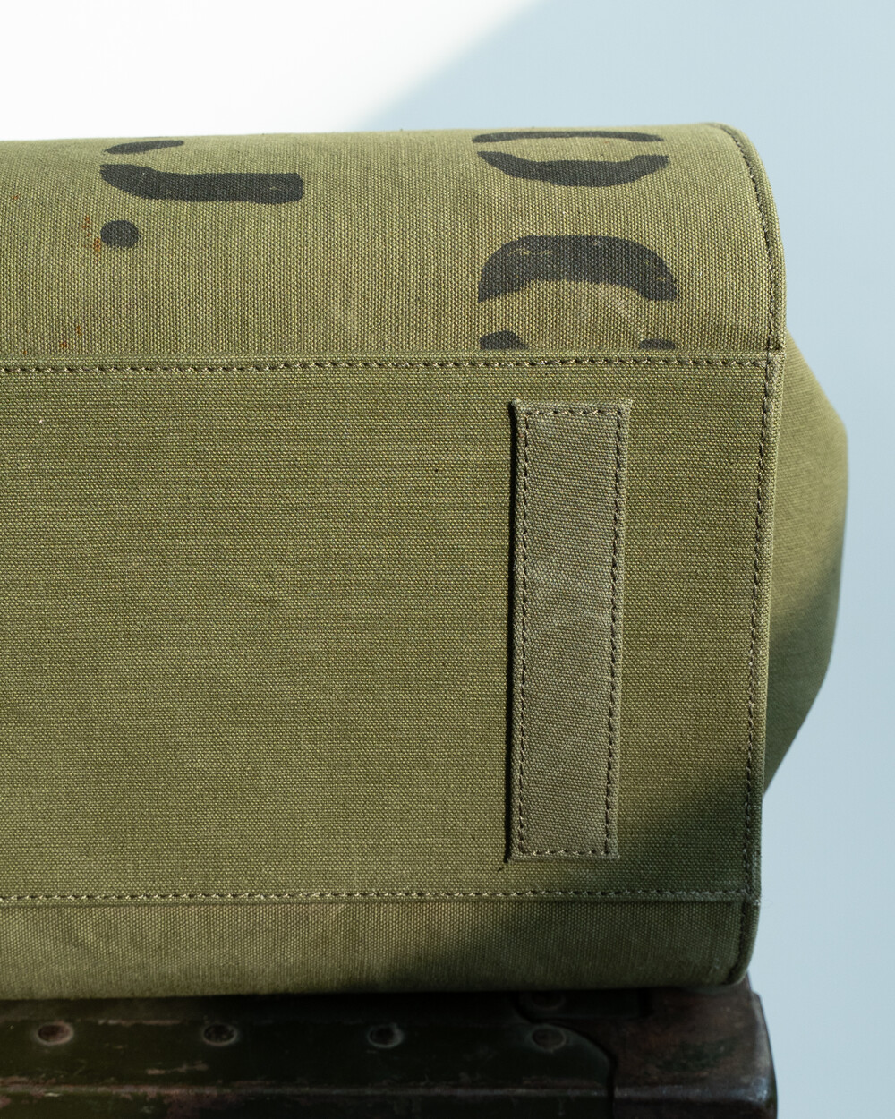 본래의 더플백에 남아있는 스텐실, 낙서, 그리고 원단의 경년 변화는 각 개체가 지나온 시간의 흔적으로, 그 흔적을 최대한 살려 제작하였습니다.
