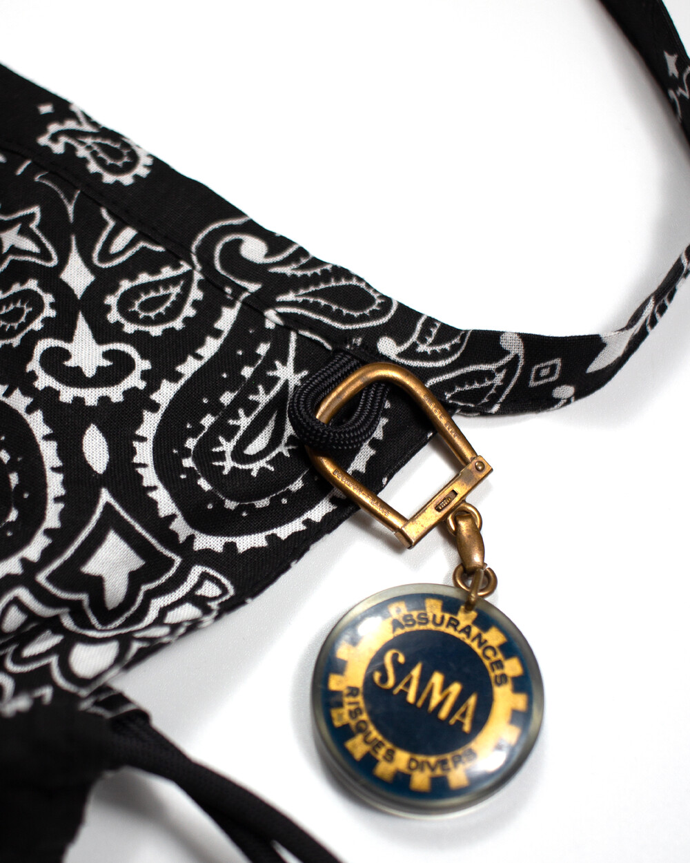 이번 에이프런백은 미국에서 생산된 페이즐리 반다나 원단을 사용하여, 문양이 자연스럽게 이어지도록 한 장씩 손으로 재단해 제작했습니다. 스트링을 사용하여 입구를 조일 수 있어 파우치 형태로도 사용할 수 있으며, 숄더 스트랩을 통해 숄더백이나 허리에 둘러 앞치마 형태로도 활용 가능합니다. 모든 공정은 수작업으로 이루어졌으며, 원단의 경년변화를 통해 시간이 지나며 더욱 매력적인 모습으로 변화합니다.