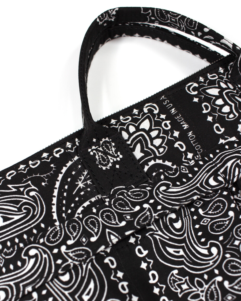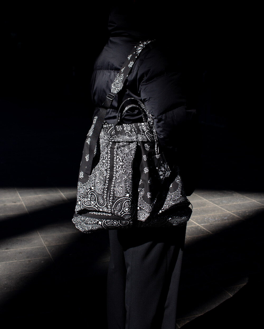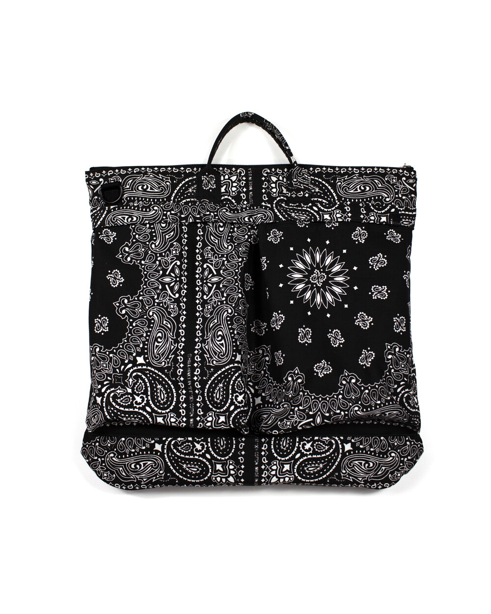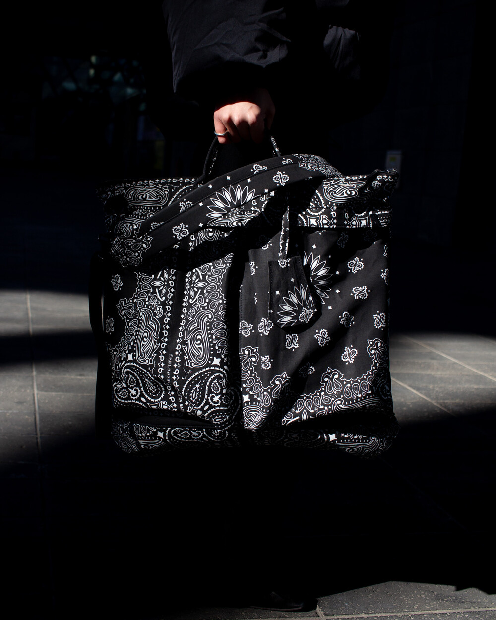기존 헬멧백의 사이즈를 조정해 반다나 문양의 균형을 온전히 살리면서도, 일상에서 부담 없이 사용할 수 있는 실용적인 크기로 제작되었습니다. 노트북, 태블릿PC 등 큰 소지품도 여유롭게 수납할 수 있으며, 내부에는 두 개의 포켓이 있어 작은 물건들도 깔끔하게 정리할 수 있습니다.