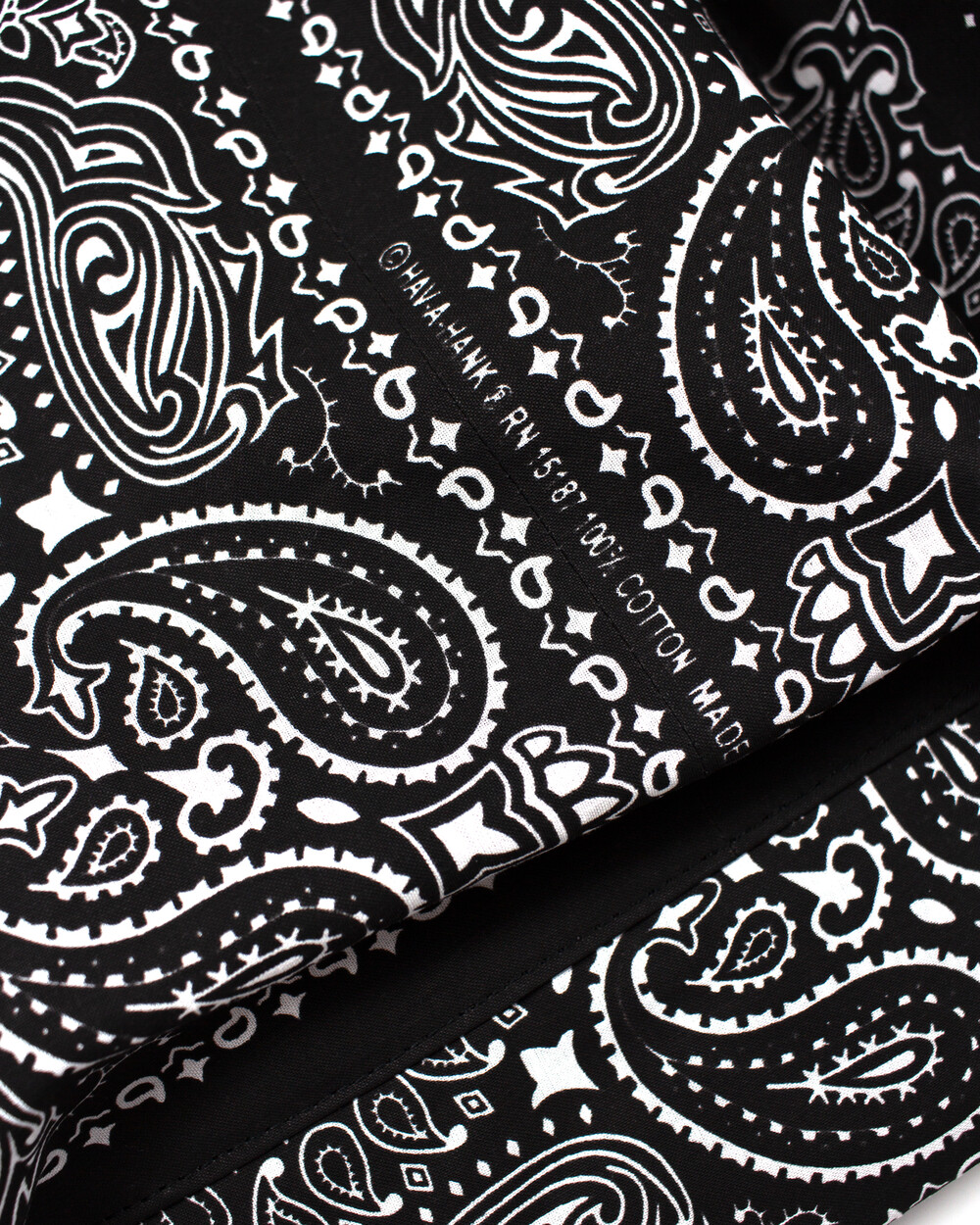 메인 소재로 ‘Made in USA’ 현행 반다나 4장을 남김없이 활용했으며, 하나하나 손으로 정교하게 재단하고 봉제해 완성도를 높였습니다.