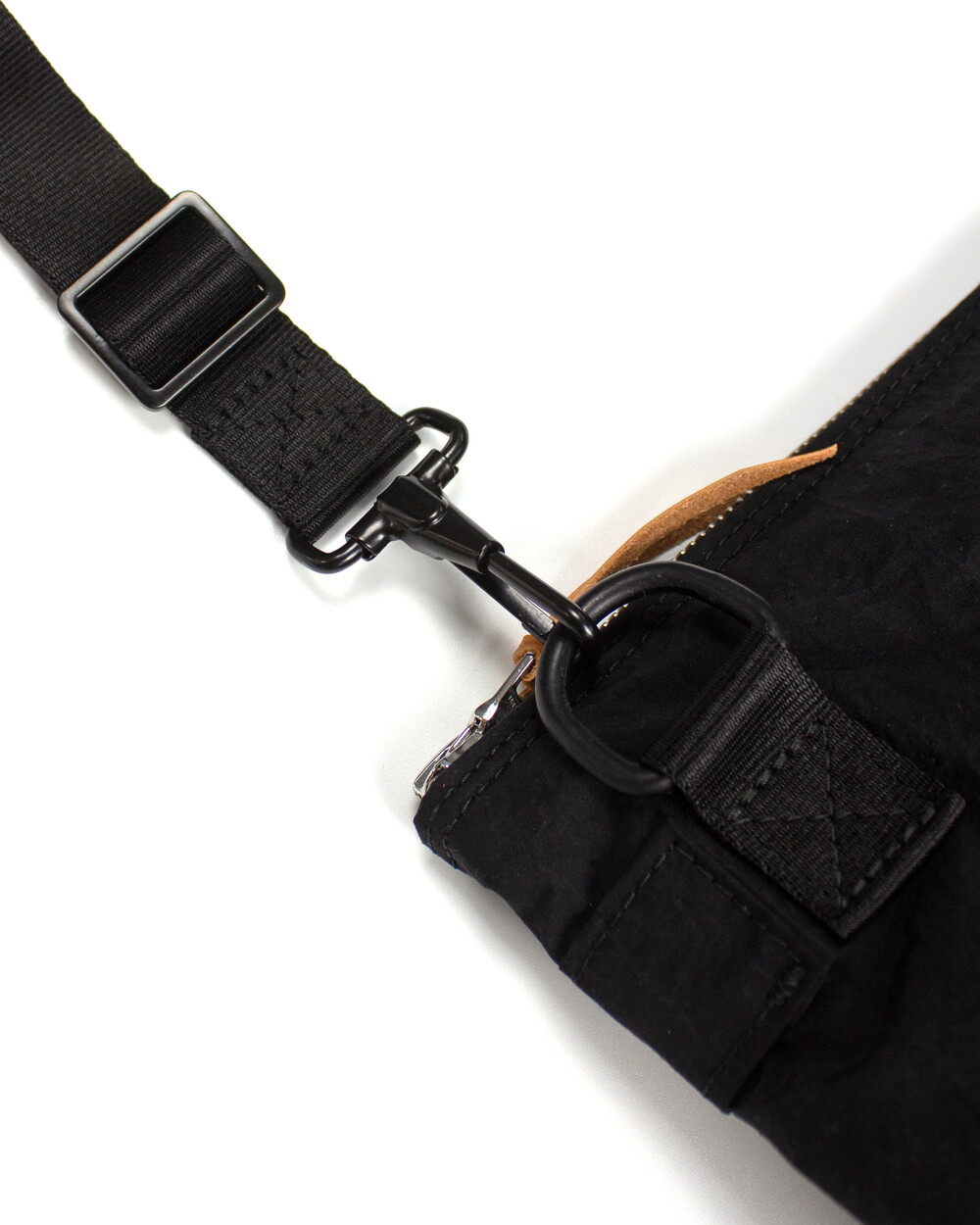 숄더를 체결하는 파츠는 미군에서 사용되는 100% 철제의 후크와 D링을, 지퍼는 리리 지퍼를 사용하였습니다.