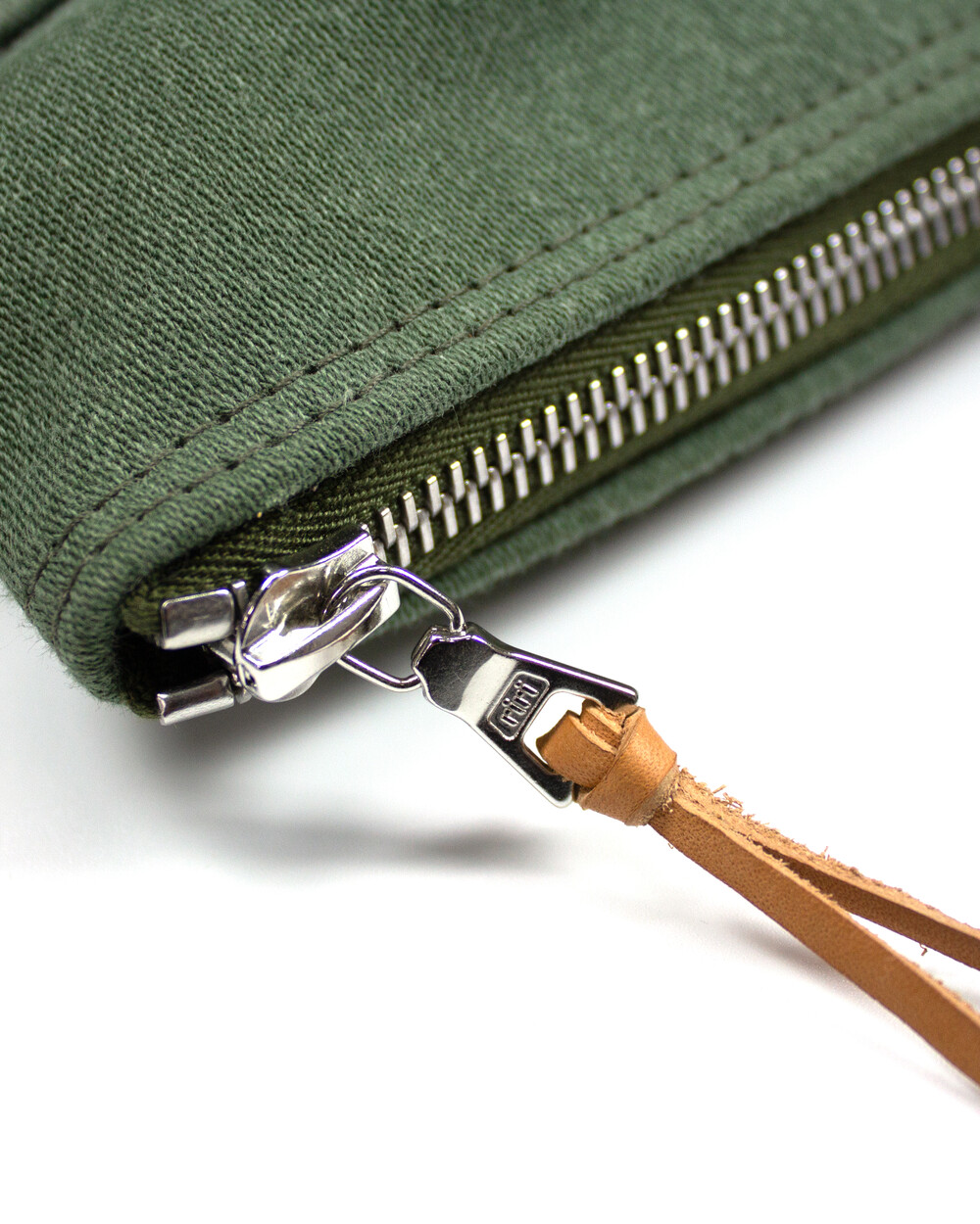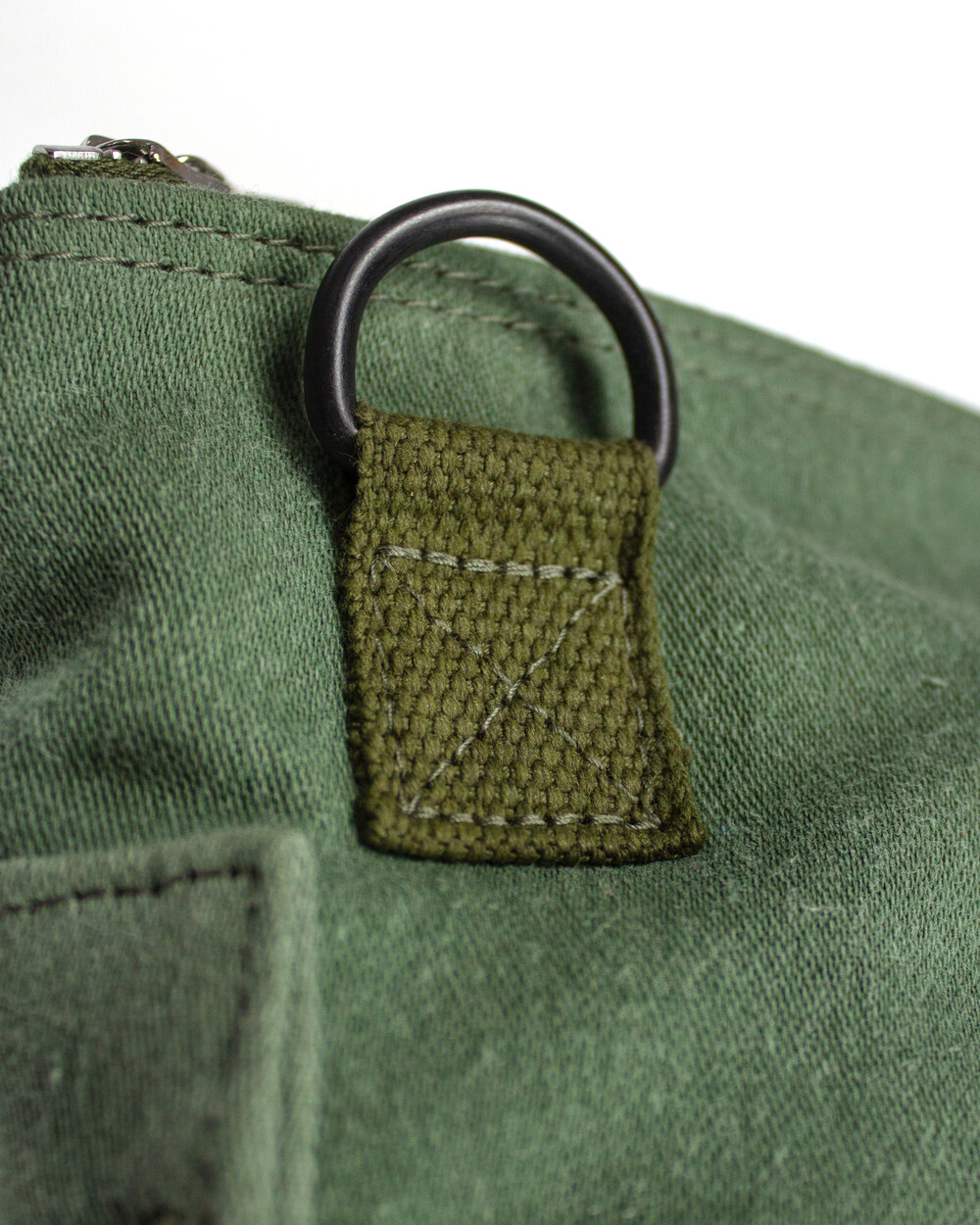 숄더를 체결하는 파츠는 미군에서 사용되는 100% 철제의 후크와 D링을, 지퍼는 리리 지퍼를 사용하였습니다.